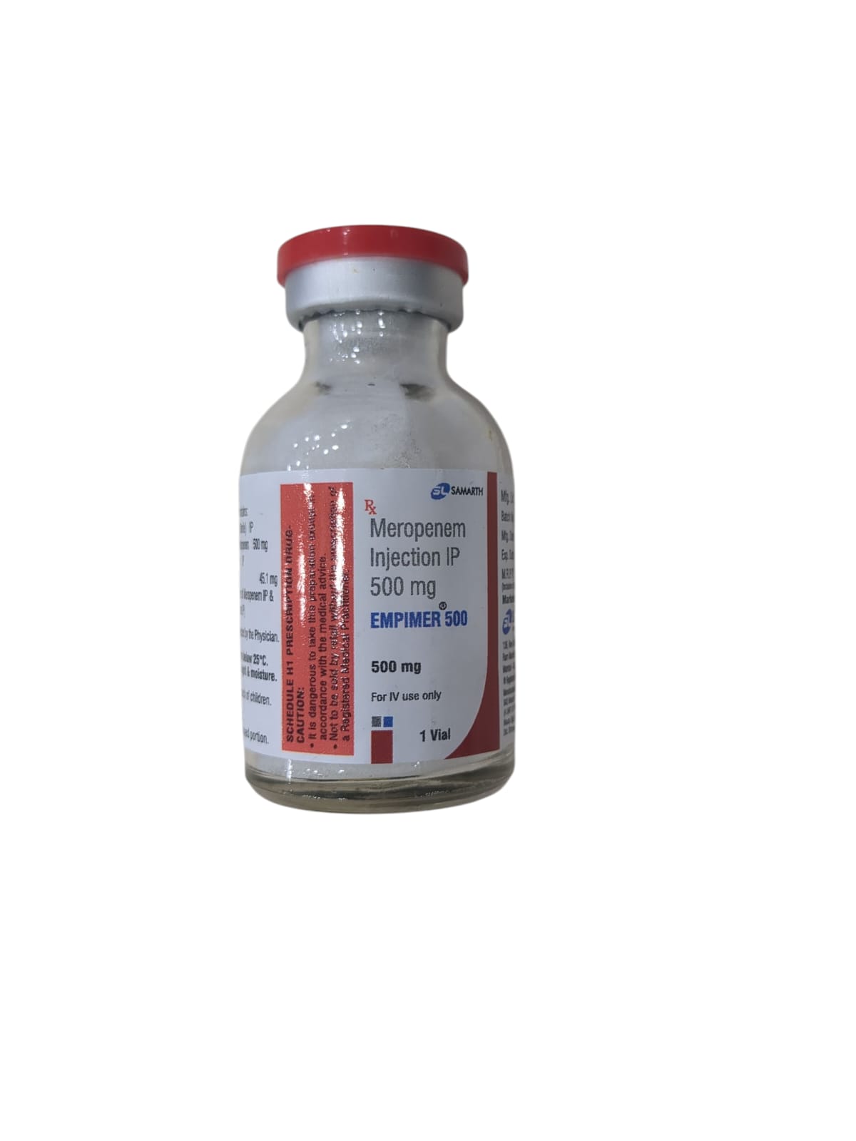 Empimer 500mg Injection belongs to a group of medicines called carbapenem antibiotics. It works by killing bacteria which can cause serious infections. It is a versatile medicine used to treat many different types of bacterial infections such as infections of the brain (meningitis), lungs (pneumonia), abdomen, urinary tract, skin, blood, and heart. This medicine is usually given as an injection by a doctor or nurse.