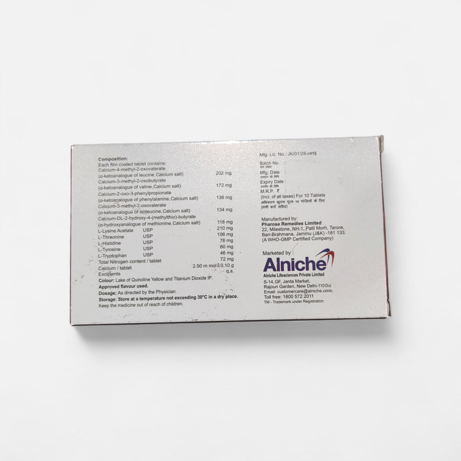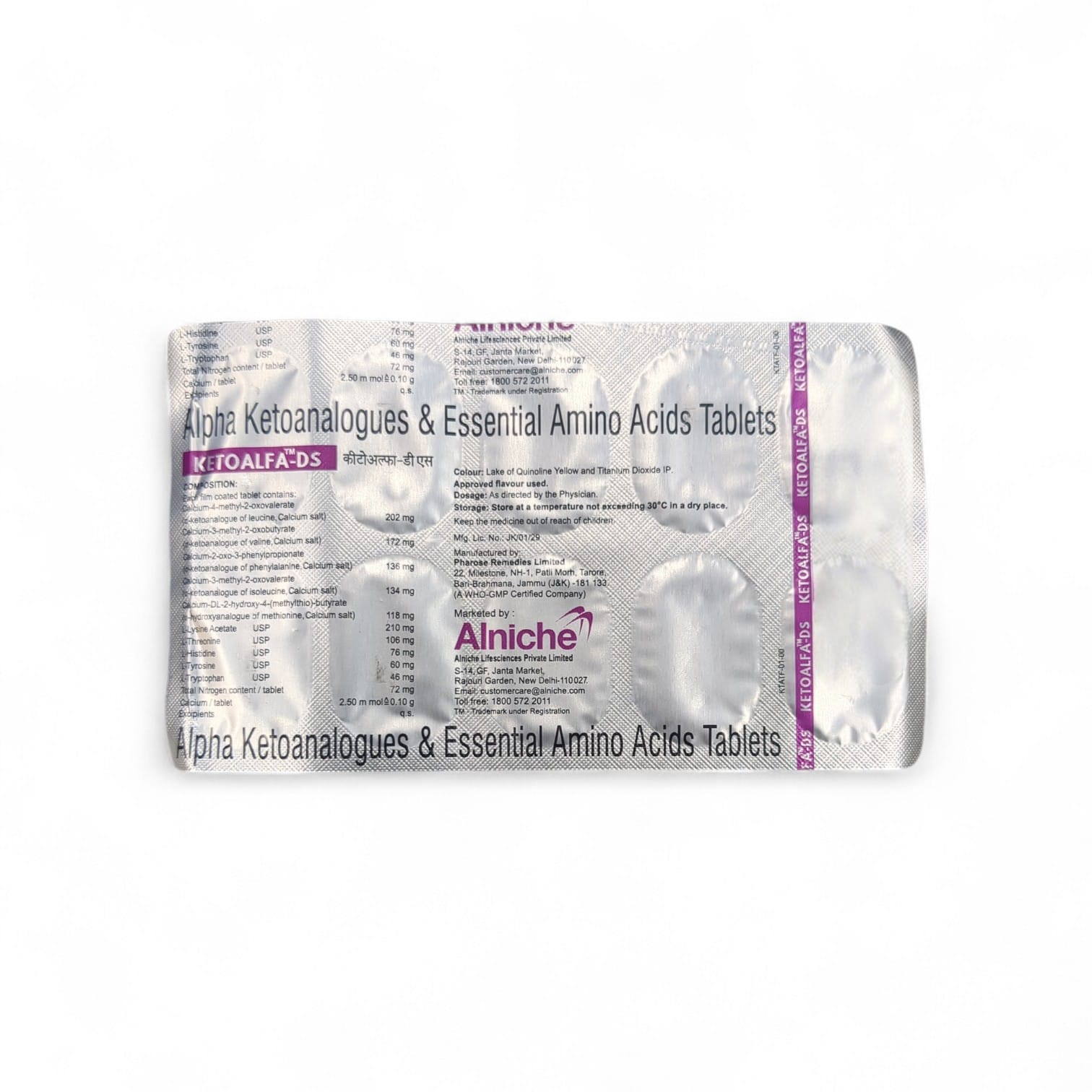 Ketoalfa-DS Tablet is a nutritional supplement used in the treatment of chronic kidney disease. It reduces urea levels in the blood and helps prevent the progression of kidney disease. This way it delays the risk of undergoing long-term dialysis.